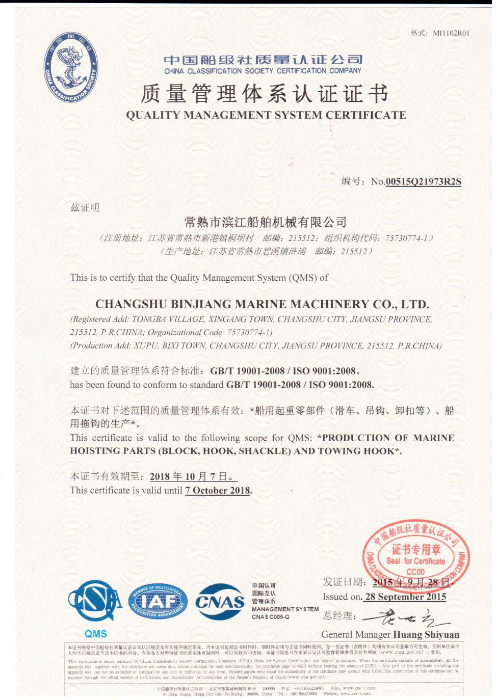 常熟市濱江船舶機(jī)械有限公司位于常熟沿江經(jīng)濟(jì)技術(shù)開(kāi)發(fā)區(qū),是生產(chǎn)船舶舾裝配件:各種型式的船用起重滑車(chē)、卸扣、套環(huán)、吊鉤、轉(zhuǎn)環(huán)、索節(jié)、螺旋扣、帶纜樁、導(dǎo)纜滾輪、導(dǎo)纜器、貨倉(cāng)蓋零部件等產(chǎn)品的專(zhuān)業(yè)企業(yè)。
